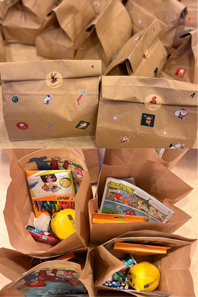 Ein besonderer Dank gilt der Klasse 8 des Otto-Hahn-Gymnasiums Böblingen. Die Schülerinnen und Schüler haben uns die übrig gebliebenen Preise ihrer Tombola überlassen, die wir so ebenfalls in die Geschenktüten integrieren konnten. Dieses Engagement zeigt, wie viel Kinder und Jugendliche selbst für andere bewirken können.