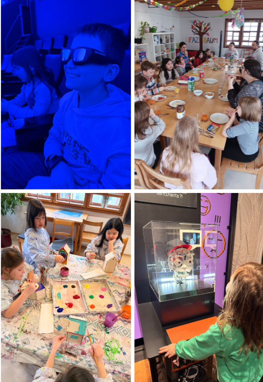 Ein abwechslungsreiches Ferienprogramm erlebten 12 Kinder an drei spannenden Tagen im Kinder- und Familienzentrum. Der Montag begann ganz gemütlich mit einem gemeinsamen Frühstück und einem Film. Am Nachmittag wurde es kreativ: Mit viel Begeisterung gestalteten die Kinder Vogelhäuschen und formten fantasievolle Kunstwerke aus Modelliermasse.