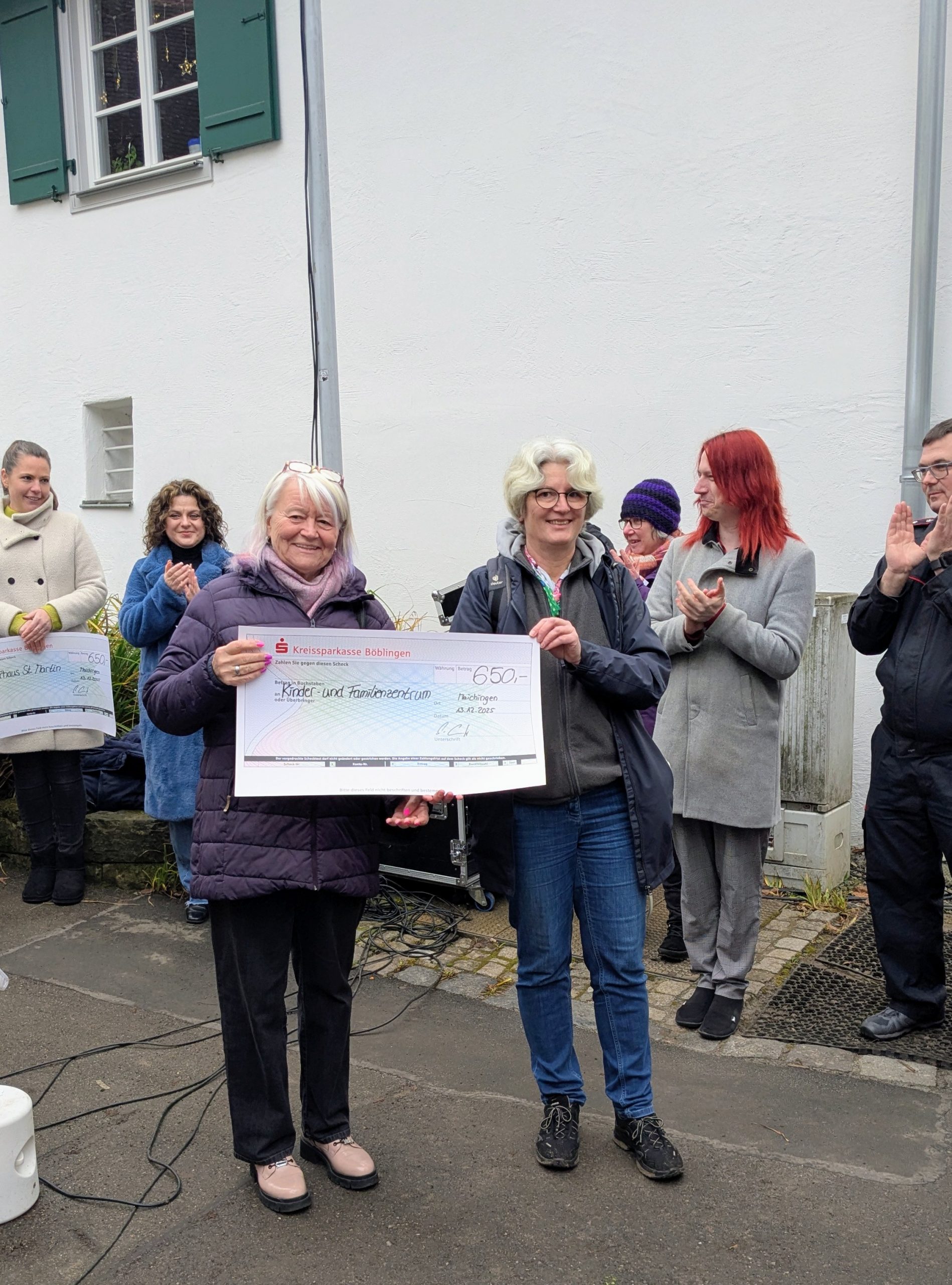 WIR spenden! – Spendenübergabe im Rahmen des Maichinger Ortsjubiläums Am vergangenen Samstag, 13. Dezember 2025 haben mehrere Maichinger Vereine und Institutionen auf dem Weihnachtsmarkt unter dem Motto „WIR spenden!“ Spenden in Höhe von 3900 Euro übergeben. Die großartige Summe stammt aus Einnahmen, die die Spenderinnen und Spender aus dem Verkauf von Speisen und Getränken am Samstag und Sonntag beim Maichinger Festwochenende Ende Juli 2025 erzielen konnten. Bedacht werden die Vereine und Einrichtungen aus Maichingen, die unentgeltlich die Spielstraße betreut hatten. Mit der Finanzspritze soll die Kinder- und Jugendarbeit in Maichingen gefördert werden. Zugute kommen die Spenden der Maichinger Bücherei, dem Kinderhaus St. Martin, dem Kinder- und Familienzentrum, der Kolping und der Johannes-Widmann-Schule sowie der STARA. „Damit möchten WIR die Tradition und den Gedanken des Kinderfestes aufgreifen, die Erlöse der Kinder- und Jugendarbeit in Maichingen zukommen zu lassen“, sind sich die Spendenden einig, so Feuerwehr-Abteilungskommandant Sascha Luft, der die Spendenübergabe moderierte. „Das WIR ist eben nicht erst seit dem Ortsjubiläum untrennbar mit Maichingen verbunden“. Gespendet haben die Maichinger Feuerwehr, der AK Asyl, die Maichinger Landfrauen, der Deutsch-kurdische Kulturverein, der CVJM, die Gartenfreunde Maichingen und die Musikkapelle Maichingen.